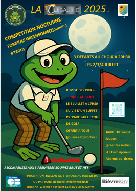Vous pouvez vous inscrire sur la fiche d'inscription sur notre tableau au golf.